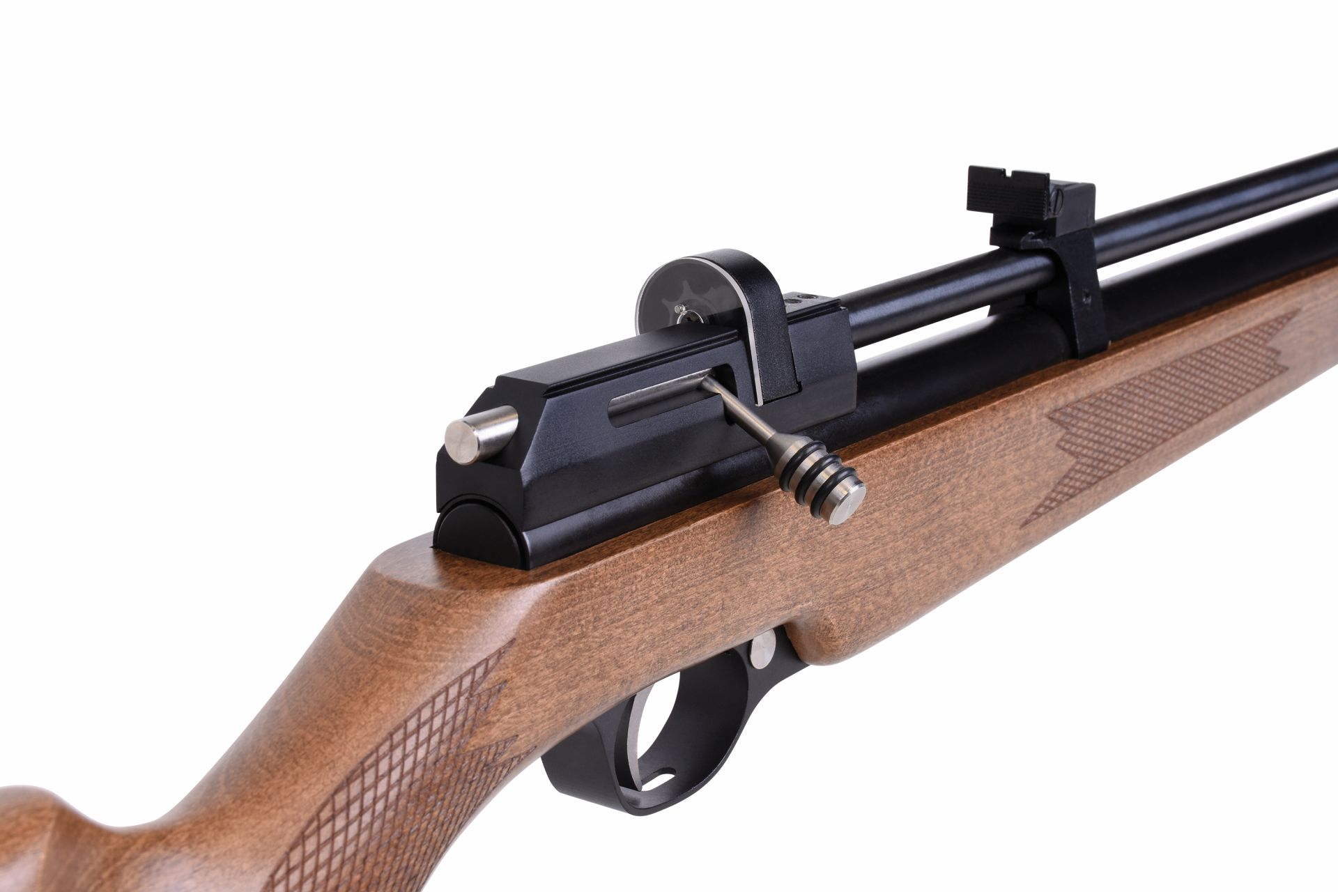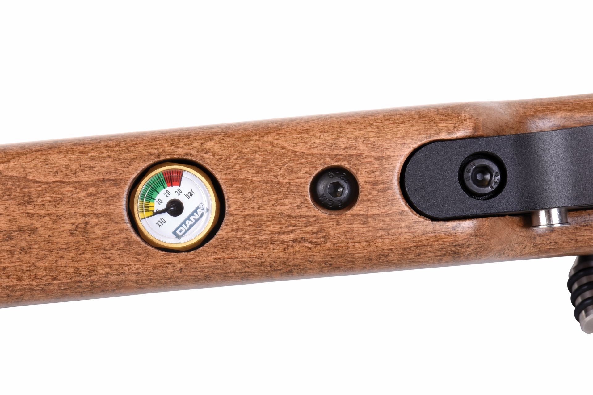 DIANA Pressluftgewehr mit hervorragendem Preis-Leistungs-Verhältnis. Das Gewehr kann sowohl im Einzelschuss-Modus als auch mit dem mitgelieferten 7-Schuss Magazin betrieben werden. Der hochwertige Buchenholzschaft mit Fischhaut sorgt für optimalen Halt. Der maximale Fülldruck liegt bei 200 bar.