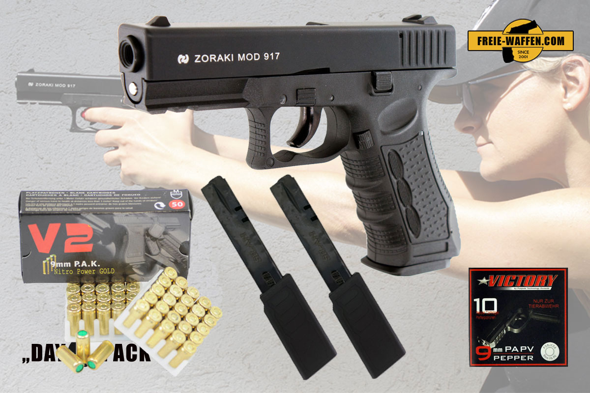 - Der Artikel "EDC: Zoraki 917 Schreckschusspistole 9mm P.A.K. + 2x 30 Schuss Magazin + 50 Stk. Platzpatronen" ist frei verkäuflich ab 18 Jahren. - Er kann nur versendet werden, wenn Sie uns einen Altersnachweis zusenden, sofern uns dieser noch nicht vorliegt. - Genaue Infos finden Sie unter dem Link Altersnachweis.
