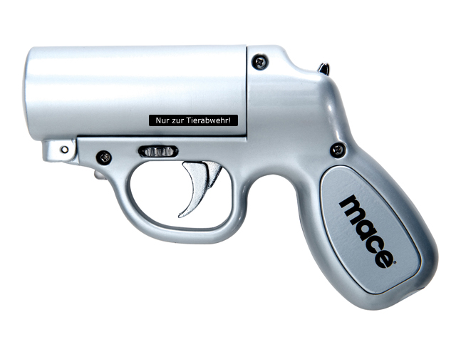 Die innovative Pfeffer-Pistole von Mace versprüht einen gezielten Flüssigkeitsstrahl mit einer Reichweite von bis zu 6 m. Neben dem OC-Wirkstoff verfügt die Pepper Gun zusätzlich über einen integrierten UV-Farbstoff, welcher unter UV-Licht betrachtet eine eindeutige Angreifer-Identifizierung ermöglicht. Die Entsicherung erfolgt durch den Daumen (an der Position des Hahns), indem man den Hebel von "Safe" auf "Fire" stellt. Die Lieferung erfolgt inkl. einer 28 g Pfefferkartusche und einer 28 g Trainingskartusche (Wasser), welche bei Lieferung eingesetzt ist. Zusätzlich verfügt die Pepper Gun über ein LED-Licht und ein Stroboskoplicht, welches durch Drücken des Abzuges aktiviert wird. Das Licht kann auch nur als Taschenlampe genutzt werden, indem man den Sicherheitsknopf auf "Safe" stehen lässt und den Abzug betätigt. Ersatzkartuschen und Holster sind separat erhältlich. Mit Pfefferspray können Sie sich zu jeder Zeit sicher fühlen. Für den zivilen Gebrauch ist es nur zur Tierabwehr erlaubt, unterliegt jedoch keiner Altersbeschränkung. Seit einiger Zeit nutzt auch die Polizei dieses sichere und effektive Abwehrmittel. Der hochwirksame Reizstoff OC (Oleoresin Capsicum) setzt aggressive Tiere in Sekundenschnelle außer Gefecht. Es sind keine gesundheitlichen Nebenwirkungen zu erwarten. Warnhinweise gem. CLP Verordnung (EG-VO-1272/2008): Gefahr: Extrem entzündbares Aerosol. Verursacht schwere Augenreizung. Verursacht Hautreizungen. Kann die Atemwege reizen. Behälter steht unter Druck: kann bei Erwärmung bersten. Von Hitze, heißen Oberflächen, Funken, offenen Flammen und anderen Zündquellen fernhalten. Nicht rauchen. Nicht gegen offene Flamme oder andere Zündquelle sprühen. Nicht durchstechen oder verbrennen, auch nicht nach Gebrauch. Vor Sonnenbestrahlung schützen. Nicht Temperaturen über 50 °C aussetzen. Darf nicht in die Hände von Kindern gelangen. BEI KONTAKT MIT DEN AUGEN: Einige Minuten lang behutsam mit Wasser spülen. Eventuell vorhandene Kontaktlinsen nach Möglichkeit entfernen. Weiter spülen. BEI BERÜHRUNG MIT DER HAUT: Mit viel Wasser und Seife waschen.