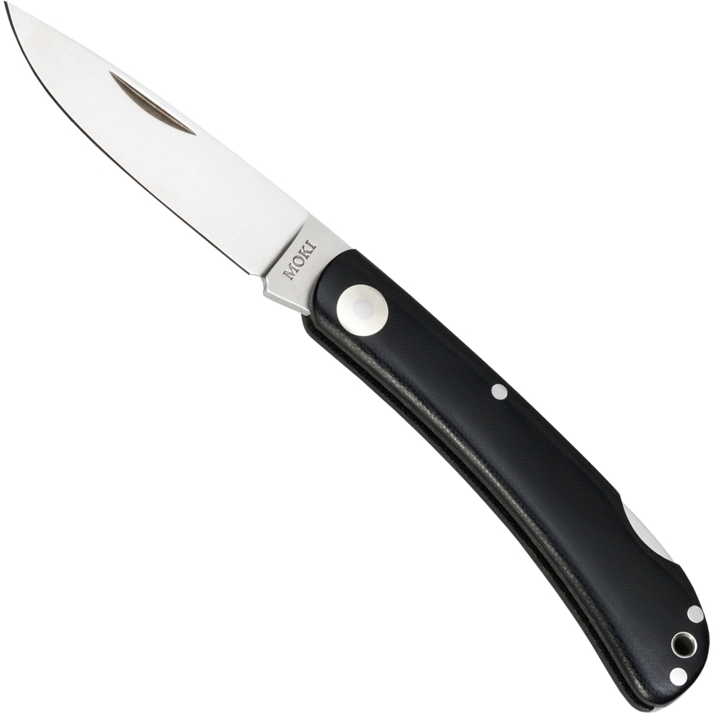 Seit 1907 werden bei Moki in Japan Messer hergestellt, wie das Moki Blakistons Fish Owl small , alle Moki Messer sind so präzise gearbeitet, dass sie als handgefertigte Einzelstücke durchgehen könnten, zum Beispiel lässt sich der Übergang zwischen Klinge und Feder fast nicht erkennen, auch der Übergang zwischen Griffbeschalung und Backe ist fast ohne spürbare Kanten. Eine Spezialität von Moki sind elegante feine Taschenmesser, alle mit Lockback Arretierung. Moki arbeitet noch viel mit Perlmutt und Abalone, jedes Messer wird in einer Geschenkverpackung und mit Etui geliefert. Ein handliches Leichtgewicht mit Griffschalen aus schwarzem Micarta, die satinierte Klinge ist aus rostfreiem AUS 8 Stahl hergestellt.