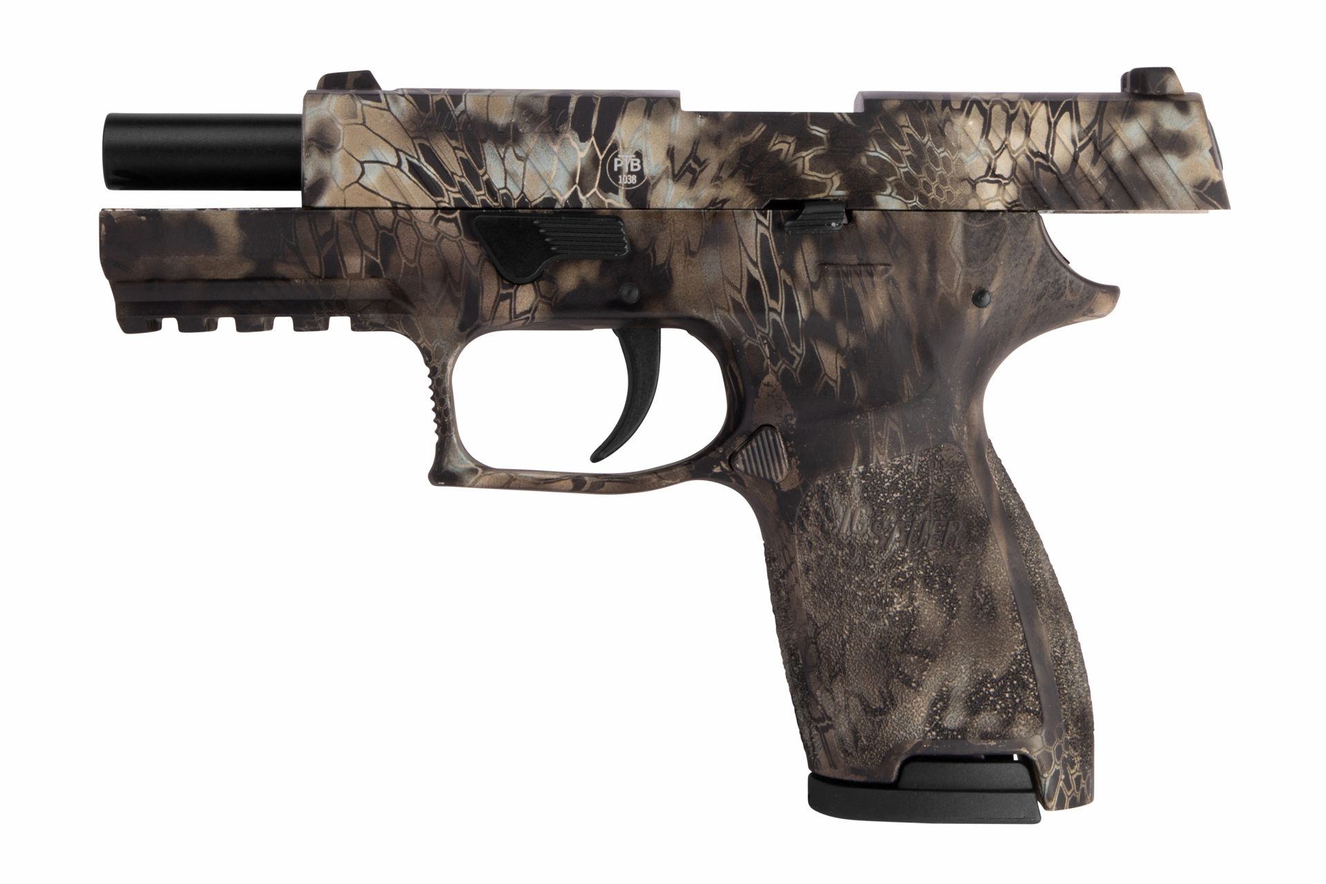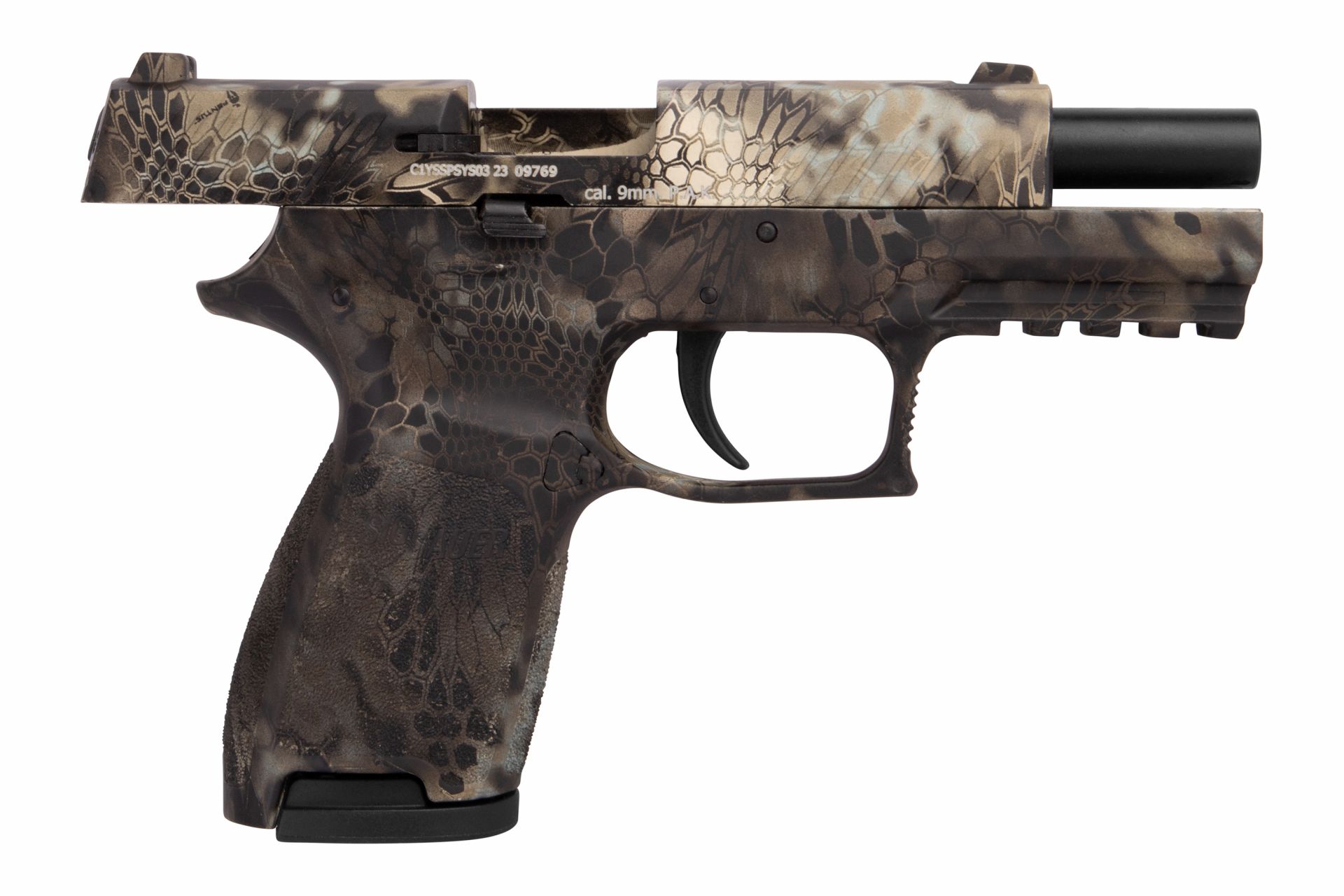 Die Sig Sauer P320 Cobra 9mm P.A.K. - Gas Signal Schreckschuss Pistole ist die neue Standard-Pistole der amerikanischen Streitkräfte - jetzt auch in der Schreckschuss-Version erhätlich. Der hochwertige Nachbau der P320 aus dem Hause Sig Sauer wird aus hochwertigem Polymer-Kunststoff gefertigt und kann, wie bei SIG SAUER Waffen gewohnt, sehr einfach zerlegt werden. Die besondere Beschichtung im Cobra Design macht dieses Modell einzigartig! Besonderheiten: Stahl-Magazin, Polymergriffstück, Integrierte Railschiene, Einfaches Zerlegen, inkl. Sig Sauer Waffenkoffer, Pyrobecher & Reinigungsbürste.